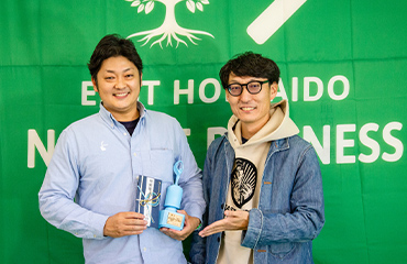 道外からの参加者で、茨城県で新聞販売店を軸に多角経営をし、釧路の吉田新聞店と知り合いました。それをキッカケに何度も釧路へ通うたび、この地の風景が好きに。その際にしみじみ思う素晴らしい風景を調べて、白樺のギフト植樹を思いつきビジネスにしたいと考え、ビジネスモデルをプレゼン。その熱い想いが伝わり、優秀賞に選ばれました。