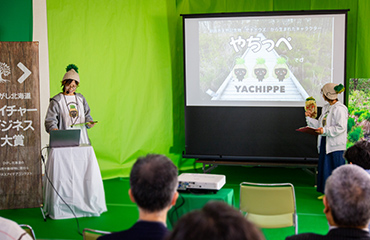 釧路湿原にある天然記念物ヤチボウズを、キモカワゆるキャラ「やちっぺ」にしてこれまでグッズ展開や見学ツアーなども開催してきました。釧路の公式ゆるキャラになるくらいの人気者にしていきたい!そんな想いを、とても楽しそうに語るその姿が会場全体をほんわかさせていた、そんないい雰囲気のプレゼンでした。